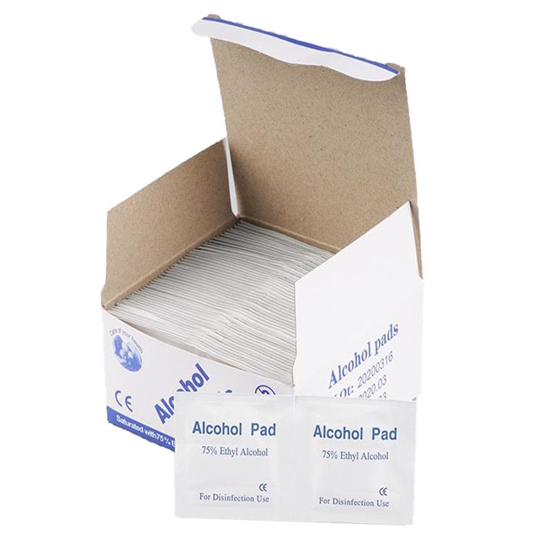 100bag/box,100boxes/ctn;200pcs/box,50boxes/ctnوسادة بيرب تحتوي على 75% من كحول الأيزوبروبيل